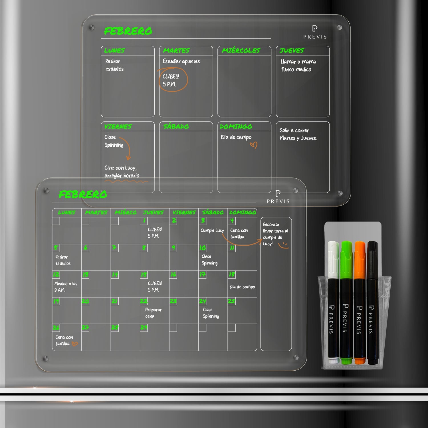 Kit de 2 Pizarra Magnetica Nevera Transparente Acrilica A4 (21X29,7CM) (Semanal + Mensual) + 4 Rotuladores - Neveras Blancas