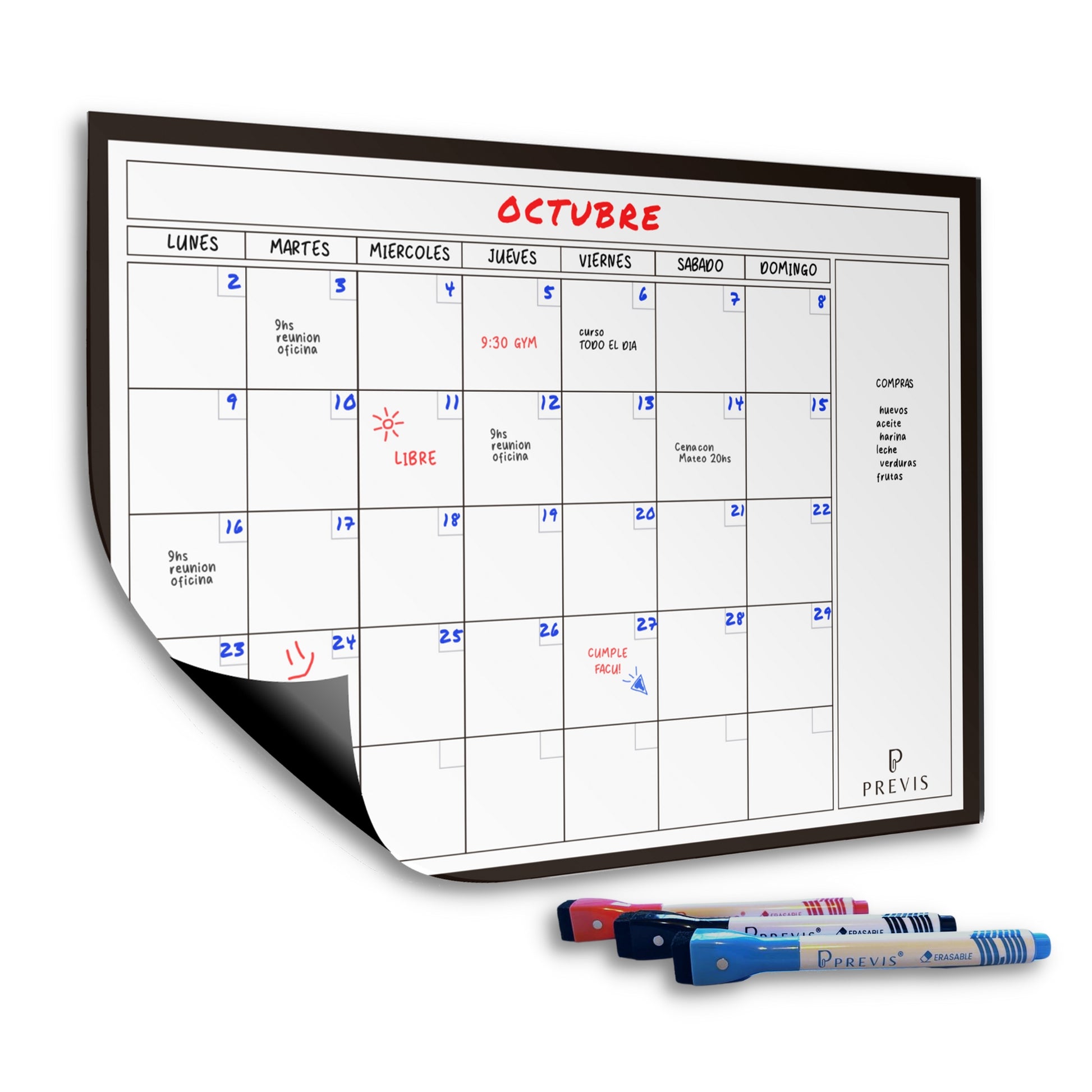 Calendario mensile magnetico da frigorifero A4 (21X29,7 cm) - Calendario magnetico - Organizer settimanale con 4 pennarelli - Lavagna da frigorifero - Pianificatore di menu, Bambini, Routine, Lavoro, Diario